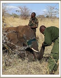 A sub-adult female elephant was first reported on the 19th of June 2016 having been sighted with a snare around its trunk by the DSWT/KWS Anti-Poaching Team based in Meru National Park