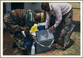 With the roads becoming rivers, Marc Goss stepped up once again and in two shorts flights ferried the team by helicopter back to the airstrip, ensuring the flight back to Wilson before nightfall.