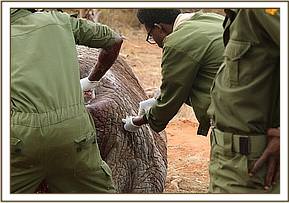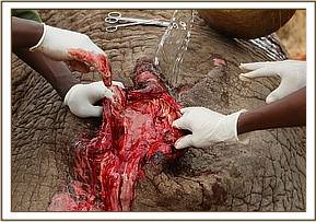 The wound was further sprayed with antibiotic spray and intramuscular antibiotics and anti-inflammatory drugs were administered as well. He was then revived and was soon back on his feet with a good prognosis as he will make a full recovery now that he has received treatment.