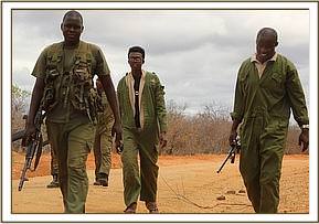 KWS Veterinary Officer Fred Olianga was flown from the KWS Nairobi Veterinary headquarters to Ithumba where he was joined by the DSWT Ithumba anti-poaching team DSWT pilot Neville Sheldrick. Neville was able to guide the team from the air to where the herd now were, having moved off into the dense comiphora undergrowth, but with the vegetation so thick this made proceedings on foot challenging, and any support from a vehicle impossible. Sadly the DSWT helicopter was away and not available on this particular day which would have simplified things. The herd instinctively formed a protective shield around their injured friend which made any chance of darting the elephant on foot almost impossible. Time passed and the hour grew late, with Neville from the air doing his best to coax the herd to open ground.