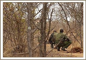 Just as everyone was beginning to think that the operation would need to be deferred to the following day, the giant bulls began walking in the direction of the stockades to take water. The team retreated and waited patiently as the herd headed in the direction of the stockade water trough. This more open ground proved the perfect platform to dart the injured bull and wait for him to slump to the ground.