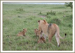 “the healing powers of large cats is amazing and this afternoon to see this lioness walking with her cubs and also squatting to release urine while she showed little remorse or pain was amazing, we only hope that she continues to improve. The David Sheldrick Wildlife Trust we thank you for your efficiency and stamina, and thanks to the veterinary surgical services from the Kenya Wildlife Services, the Narok County Council and empathic concern of the Governors Camp staff.”