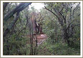 Finally, after an hour of searching, the team resorted to going on foot and the victim was flushed out into a clearing where Dr. Olianga was able to dart her successfully. Once darted she immediately disappeared back into the thick bush and out of sight. The team was faced with a dilemma; they had no way of knowing if she was safely tranquilized but if not monitored she could disappear or even worse, fall awkwardly which would be a life threatening situation.