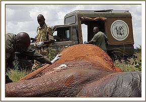The KWS Officer directed the plane to the GPS coordinates where the firefight took place and a systematic search began. The Rangers on the ground had found a fresh elephant carcass with its face hacked open and the tusks missing; obviously a casualty from the night before. The plane continued searching for more casualties whilst the Rangers searched for the poachers footprints. Despite regular transects across the area, ensuring that the ground was covered well, nothing else was seen. Further afield two small herds of elephants were seen and the aerial support team flew over to check them, but luckily there were no injuries.