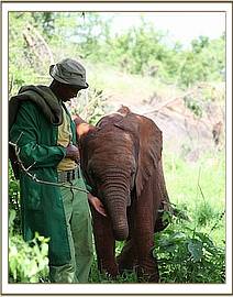 Suguta despite arriving at the Nursery as a tiny baby, never having known anything but the Keepers and her Nursery life, calmed down quickly, and by day two was no longer clinging to the Keepers. She was clearly enjoying the company and attention for the older ex orphans, and relished the attention given to her by Wendi. It was heartwarming to watch the new arrivals so quickly settle in to Ithumba life, adapting to a new place and routine, under the watchful eye of Wendi and her group of ex Orphans, and of course our Ithumba Keepers headed by Benjamen.