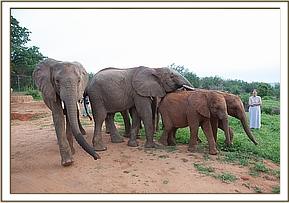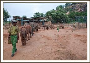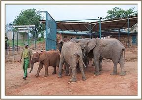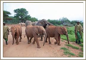 In the middle of their first night Wendi's group arrived at the stockades, and she was so excited by the presence of new arrivals at Ithumba that she kept vigil throughout the night, sleeping close to the stockades and waited until dawn for the Keepers to open the doors.