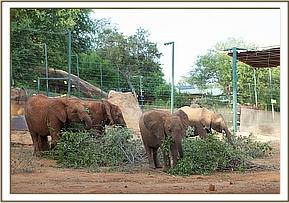 It was clear that Suguta and Melia found the whole ordeal more traumatic than Tumaren, who despite a reluctant beginning seemed terribly laid back about things, but by the afternoon they had all settled down and were happily feeding with the rest of the orphans. Chaimu, Kilaguni, Sabachi and Meibai remembering their old friends stayed close to the new arrivals throughout the afternoon. That night they were accompanied by Chaimu, Kilaguni, and Ithumbah in the electrically fenced Ithumba stockades. regardless of this being a very different set up to the Nairobi Nursery, it didn’t take them long to familiarize themselves with their new night quarters, their new routine, and the electric fence. They enjoyed a dust bath in the stockades and fed next to their friends, the power of their communication clearly evident with the Ithumba Orphans guiding them every step of the way.