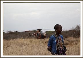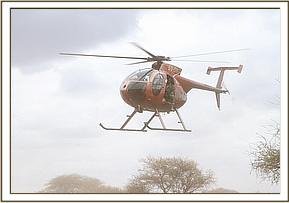The DSWT helicopter was also called to assist with this case due to the difficult lava rock terrain which made access to the elephant’s location extremely challenging. Guided to the area by Big Life’s Team Leader the Vet from Nairobi, the DSWT helicopter pilot and KWS rangers converged close to the scene. The men then prepared themselves for the operation ahead. Once ready and everyone was fully briefed Dr. Kaitho and the DSWT pilot Humphrey Carter went up in the helicopter to gently guide the injured bull off the lava flow onto flatter and more suitable ground.
