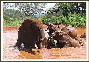 Another could be 13 year old Orphan Lominyek, whose mother died in a hail of automatic gunfire from poachers in Samburu National Reserve when he was l8 months old, and who, himself, suffered a bullet wound in the leg. Lominyek was only with us for about 7 months before befriending a tuskless wild Matriarch, and leaving the orphans to become a permanent member of her herd. Thereafter, he was occasionally seen by the then Keepers with this wild herd on the Voi River when he would come over to greet the orphans, but had no inclination to rejoin them, very comfortable with his new mother and family.