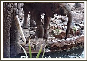 November 2004:- A 3 year old calf, with an old snare wound that was still swollen, and needed monitoring. After topical treatment, the baby was able to rejoin its elephant family.