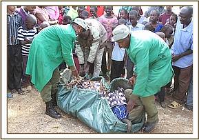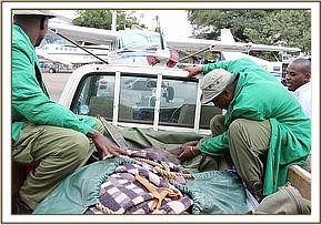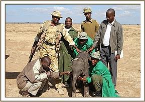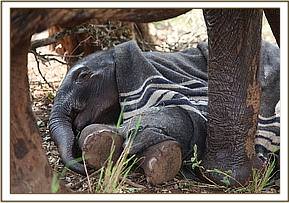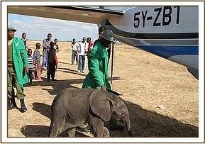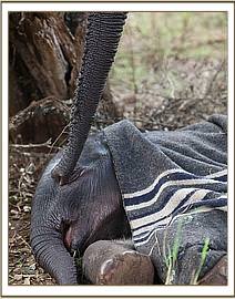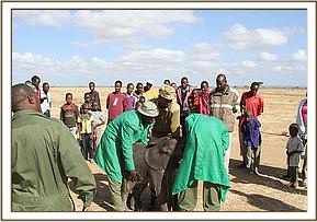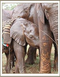 2 - 3 month old baby "Maralal" was rescued by local tribesmen and KWS Officers from the Karisia forest on Easter Monday (9th April, 2012) near the town of Maralal. She was another well victim whose mother and Elephant family had to walk away when humans brought their cattle in to drink. As such this baby was vulnerable from the start, not only due to the threat of pneumonia, but also because she was in the midst of cutting her first molars, which is always a problematical time when deprived of mother's milk. Suffering from the shock and grief of losing her elephant mother and family, she had ingested mud and dirty well water into her fragile infant stomach that had been without her mother's milk for far too long, (since baby elephants suckle their mother little and often) so her digestive system was in turmoil.