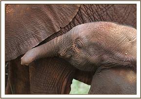 It is with deep sadness that we have to report the death of baby Rukinga , rescued from Rukinga Ranch abutting Tsavo National Park on the 27th September 2012, aged approximately l month, his mother along with several other elephants, having been gunned down by Poachers during the current poaching epidemic that is threatening all elephants throughout Africa, irrespective of location. Little Rukinga came into the Nursery in fine fettle, too young to understand fear, so from the start he was trusting and loving towards the Keepers, and cosseted and loved by all the other Nursery female elephants. He thrived from the outset, until the onset of his teething period.