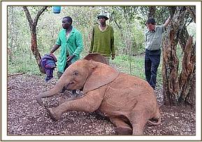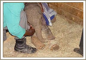 We named this tiny 4 day old calf, Seyia after the reeds that adorn the pastures of his birthplace. He was such a little fighter, and tried so hard to live, but from the start the odds were stacked against him. He simply never thrived and after three weeks of struggle, and mountains of medication, we knew that this was a battle destiny had decided was not going to be won. He passed away quietly and peacefully this morning at 8 a.m., a skeletal and tragic little figure, whose suffering had at last ended. Rest in peace little Seyai, a very brave little elephant who tried so hard to live.