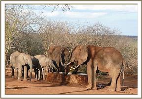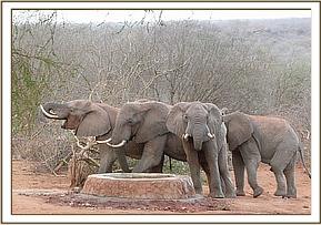 During October 'Friend' was absent once again, only to return this time with no less than 20 of his friends, so the word is spreading rapidly! Their presence at the orphan Stockades is becoming a daily feature and the borehole pump is having to work overtime to satiate their demand for water at the Stockade trough. Now that the gates of Yatta’s stockade are never closed, buls, including Friend, and some of his entourage have even ventured in to partake of the orphans’ Copra supplement hand-out!