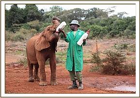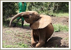 Weeks turned into many months and with the help of turmeric in every milk feed the inflammation and swelling subsided, and her mobility began to come back. Still by July she needed to squat frequently to relieve the pain, and this was now four months later. But it was evident that Murera was a very special elephant indeed, not that we needed further proof of this for her fighting spirit and courage had touched many peoples hearts by now, but she slowly emerged from her self inflicted isolation to fraternize with the Nursery orphans, with a special friend in Sonje, and this was the moment that we all realized that the struggle to heal Murera had not been in vain.