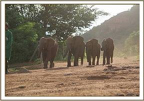 All three of the newcomers originated from the Southern section of Tsavo East and somewhere they must have remembered this as home, for the scents, the food, and the vast landscape was probably familiar because they all appeared extremely content very rapidly. Ironically it was old Nursery friends Tundani, Nelion and Lentili who were the most stand-offish; perhaps a little jealous of the attention lavished on the new arrivals. Only about an hour later they came to give their old friends a warm greeting.