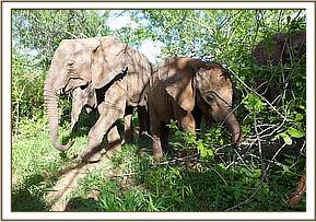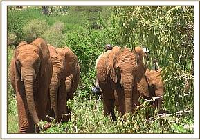By the time Meibai, Enesoit and Naimina arrived at Ithumba, and the vehicles were parked against the Unloading Bay at those Stockades, Loijuk, (the new Leader of the Keeper Dependent Ithumba orphans, (Naserian having made the transition into Yatta’s ex orphaned Senior Group) was there to greet them, along with Sidai, Lualeni, Kora, and Sian. The welcome those three newcomers received was joyously touching and exceedingly exuberant. Since all three were orphaned at an age when they could recall their time as wild elephants, they were overjoyed to find themselves amongst older inmates, and in the midst of endless thickets of delicious and nutritious browse brought on by two heavy storms at Ithumba.