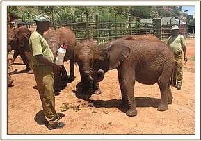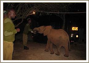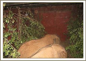 Wake-up on the 4th was at 3.30 a.m. so that the milk feed would be the carrot to get the elephants that were going into their respective vehicles for the journey. Since all had enjoyed many weeks of practice, this loading was one of the smoothest we had ever experienced. All went in without hesitation; Kenia and Shira in one large vehicle, Enesoit and Naimina in another, and Meibai, (the largest of the candidates) in a amaller Canter on his own. All, of course, had their Keepers with them for company during the journey armed with bottles of milk and cut greens.