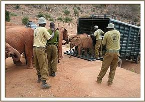 Under the guidance of Roy Carr-Hartley they were duly loaded onto the waiting truck at 4.15 am on the 13th of August, both together in one truck in the company of their favorite Keepers. The team was on the road by 4.30 am so this ensured they missed the Nairobi traffic and traveled during the cool of the day. These two young boys were the easiest two we have every moved, probably because they were slightly younger than usual. They were both totally accepting of the lorry and their destiny in the hands of the men they love and know as family and for the whole 500 km journey they remained calm and fed well throughout.