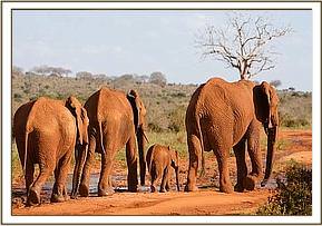 It was past 5 a.m. when the three trucks drew out of the Nursery Compound, all the staff standing by to wave a fond farewell, for it is always a time of mixed emotions. They are going to a better place, with still many dependent years with their Keepers still by their side, and all still milk dependent, but now they have the opportunity of mixing with wild herds, and slowly slowly the ability to assimilate into them. This process takes anywhere from eight to ten years. But loosing them from our everyday lives here at the Nursery is always sad - for Shimba as been with us in the nursery since a tiny infant, but was now travelling to his new home with his best friends, Mzima his stockade mate, Siria, and Wasessa . These special friendships, bonded more by them all of them sharing the same fate of loosing their beloved elephant herd, will last a life time.