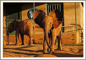 At the Rehabilitation Stockades, the Keepers do not actually sleep in with the elephants, as they do in the Nairobi Nursery, but several are on duty nearby, in case a calming human presence is needed during the night.