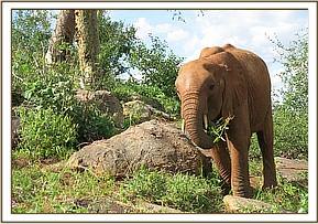 After the first feed of the day, the stockade based juniors enjoy stockade games as the Keepers take their breakfast. The elephants enjoy chasing one another around in a game of hide and seek; the boys indulge in pushing tests of strength (their favourite pastime) while the older females oversee those smaller and are at hand to mete out discipline when what starts as fun, degenerates into an argument promoting a cry for help. Once the Keepers have finished their breakfast the orphan herd heads out to browse. The elephants themselves deciding which direction to take, whilst the Keepers merely follow behind providing the comfort of carers.