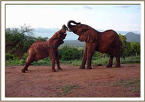 Dika, named after the Dika plains of Tsavo East, is from the Tsavo elephant population, since he was found confused and alone on a small patch of private land sandwiched between Tsavo West and East. Back in our Nairobi Nursery, it took days to extract all the thorns from his flesh and months to heal him psychologically, for so deep was his grieving for his mother and lost herd that we doubted that he would ever recover fully. For four long months he stood forlornly apart from all the others, with watering eyes and depression expressed graphically in a dejected body language. He took his milk only reluctantly, had difficulty sleeping at night, often crying out in anguish plagued by nightmares.