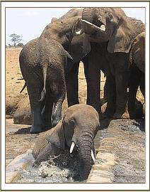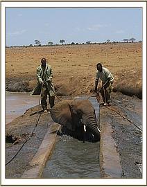 On the 24th October The David Sheldrick Wildlife Trusts Tsavo Mobile Veterinary Unit (Funded by Vier Photen) was called upon to rescue a young elephant stuck at the Aruba borehole, in Tsavo East National Park