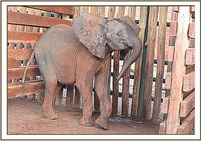 The presence of the other orphans had a calming effect on the newcomer and she instantly took milk from a bucket. It was a couple of days before she was sufficiently tame to take milk from a hand held bottle but once this had been accomplished she settled rapidly. We gave her the name ‘Araba’ meaning Elephant in the Waliangulu tribal language and estimated her age on arrival to be just under two years old, still very much a milk dependent candidate.