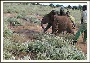 The calf's presence was reported to the David Sheldrick Wildlife Trust's Voi Stockades in Tsavo East on the afternoon of the 28th of May by the Kenya Wildlife Service. The head Keeper of the Voi Stockades contacted the DSWT Nairobi HQ that afternoon to make the arrangements for a rescue plane from Nairobi the following morning as darkness was already setting in.