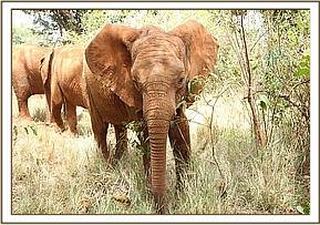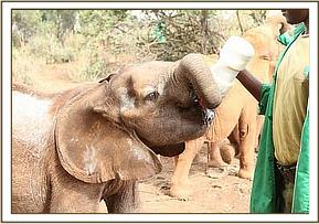 But the drama concerning Asanje was not over. As the weeks passed she grew stronger and joined the orphans out in the bush becoming comfortable with the routine and making new and special friends with many of the elephants in the Nursery. But just when we thought all was well, early one morning while out in the forest with the others Asanje suddenly swelled around her neck and chin, grew weaker and weaker, circling around in one direction and seemingly lost her sight. It took many men to guide her back to the safety of the stockades. Edwin immediately reported Asanje’s deteriorating condition to Angela who ensured that she was given cortisone intravenously to save her life. Clearly she had suffered a monumental anaphylactic reaction to something, something that remains to this day a mystery but we suspect it could have been a cobra snake bite. She was placed on a drip to restore her strength and as the day passed grew stronger, the swelling subsided and she began to feed once again.
