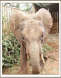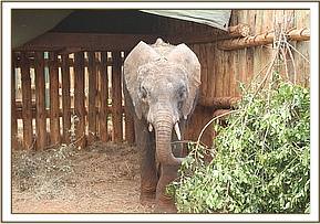 The following day was challenging as this was a large elephant, much larger than we are use to rescuing – with tusks about five inches long, although one had been broken. His rescue was not because he was unable to survive without milk, but because he would have been slaughtered had he remained there – Dr. Rono felt that his chances at a new life and family were best placed through the Nursery and the Rehabilitation Program in Tsavo rather that being transported directly to the Aberdares and released there in a new environment and with no family and friends. By now he was extremely aggressive, but feeding well, and getting through incredible amounts of vegetation that constantly had to be replenished. We have given the name Bongo – synonymous with Mount Kenya, and a very African name. As the days past Bongo learnt about milk, although old enough not to need milk, but certainly still with an appetite for it. He began taking the milk from a bucket very early on, and very soon understood the milk bottle and quickly tamed down enough to take his milk from a Keeper in a bottle. His stay in the stockades has been a lengthy one, as Bongo is the largest we have ever had in the Nursery. We need to tame him down sufficiently so that he can be safely transported to one of our two Relocation Units in Tsavo.