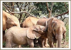We named her Dupotto after the area where she was found. Once she arrived at the Nairobi Nursery she settled and began feeding well from the outset, and very fortunately did not struggle to assimilate the new milk formula. Her road has been relatively smooth physically, but Dupotto’s scars are emotional ones. She has behaved very strangely, clearly suffering psychologically from events that befell her by being excessively restless and agitated. While she was part of the junior herd she fast became a disruptive member in the group. Then she discovered Embu, rescued four days before, an older orphan of approximately 18 months old who was retrieved from the forested slopes of Mount Kenya on the Embu side of the mountain by the Kenya Wildlife Service.