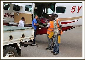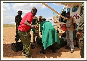 The community found the elephant calf near a boma without her mother and alerted the Mara Elephant Project. The MEP rapid response team then brought her to Kichwa for collection. The flight from Nairobi to the Masai Mara is forty five minutes and the team came well prepared with milk and all the paraphernalia required for transporting the calf efficiently and effectively. In no time she was prepared for the journey to the Nairobi Nursery.