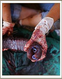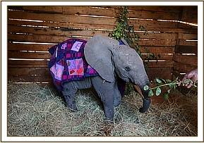 The following day, a three hour operation was performed with three Vets in attendance in order to stitch together this little calf's trunk. The operation went well, but despite being heavily sedated for the days afterwards, she set about trying to dismantle all the painstaking stitching that has been done. An elephant's trunk is said to have 40,000 muscles, divided into as many as 150,000 individual units, and the constant contracting, expanding, wiggling and squirming, makes it very challenging to keep sutures in place.