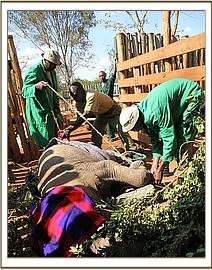 The Rescue team equipped with all the necessary paraphernalia and medication immediately set off by air from Wilson Airport in Nairobi for the Ol Malo Ranch airstrip, where a truck and Helping Hands were awaiting them upon arrival.