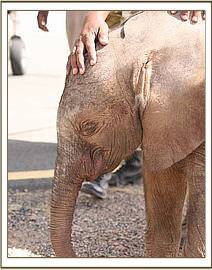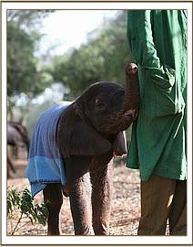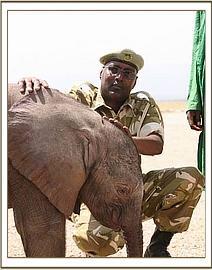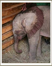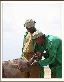 This baby bull who has been named “Kibo” was discovered in the well by Masaai elders who reported his predicament to the Amboseli Elephant Research Project . The calf was rescued from the well at 9.00pm, and was taken to the Amboseli Elephant Research Project Headquarters for the remainder of the night and there he was given water and covered in a blanket and watched over all night. Very early the next morning the Trust was called and a rescue plane and team mobilised. In the meantime the calf was driven to the Amboseli airstrip where he was able to warm up in the early morning sun as they waited for the plane to arrive. The Keepers were able to feed him some milk before preparing him for the flight back to Nairobi. Estimated to be about two to three weeks old, Baby Kibo was in good physical shape on arrival, but for extensive bruising on his back, almost identical to that on the back of Mawenzi. Obviously a priority is to try and sort out that well so that elephant calves that fall in can get out, and this is being addressed.