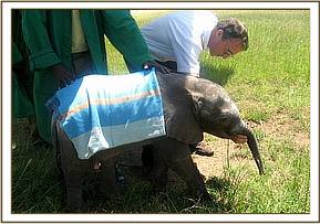 During the morning of 25th January 2006, we were alerted by the Kenya Wildlife Service that a very young orphaned elephant was being held at a KWS station near the Trans Mara town of Kilgoris in Southern Kenya. The rescue was immediately scrambled and the rescue crew and plane flew to Kitchwa Tembo airstrip, the closest strip in the Maasai Mara, to await the arrival of the calf, who was in the process of being driven the 45 km + drive to this point.