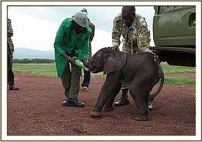 This tiny newborn male calf was orphaned during the morning of 20th November, 2011, apparently left by his mother when she and her herd were chased out of an area of human settlement near the Ruiri outpost in the lower Imenti Forest
