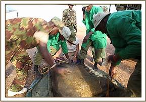 During the following days after the calf's first sighting the lodge management continued to look for her yet did not spot her until the morning of the 2nd of March, when the decision was made to take her into their safekeeping, as clearly she remained an orphan and her condition was worsening. The Borana Ranch rangers successfully managed to capture the abandoned elephant calf at 1.45pm on the 2nd within the Simangua Valley of the Ranch, before she was loaded into their vehicle and driven to the lodge to await the DSWT Rescue team, who had received the report earlier in the morning and had prepared for an afternoon departure from Nairobi's Wilson airport.