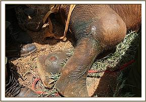 His 'fight' further fuelled the SWT team's resolve to do all possible to save Luggard, understanding it would be a long and hard journey ahead. It began with intensive medication for the infection, and the regular cleaning of his wounds, but as the weeks passed he became increasingly distressed at being incarcerated in a stockade. He missed the other orphans enormously when they headed out into the forest to browse each morning so Angela made the decision to let him join them, mindful that his happiness was the most important ingredient towards complete and ultimate healing.