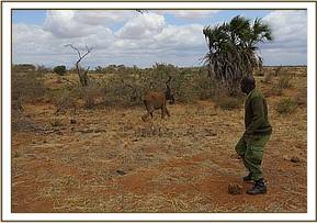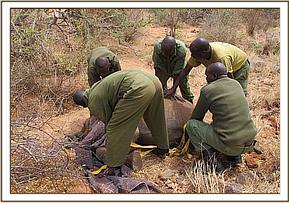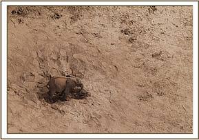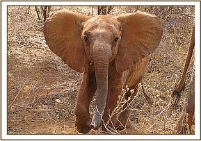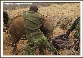 This female calf was first sighted by the Trust Pilot on the 3rd August 2013 whilst flying over the Mudanda area of Tsavo East National Park on a routine aerial recce mission. The calf was alone in the Mbololo watercourse desperately searching for water in a dry sandy lugga. (The carcass of a female elephant that could have been the mother had been spotted near Mudanda Rock a week ago by KWS.)