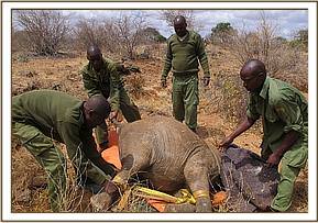 The calf, estimated to be about one year was rescued by the Voi Elephant Keepers that same day, and driven to the Voi Stockades in the back of a Pickup Truck, where she was put into the new Taming Stockade next door to Mbirikani. She was very dehydrated, obviously having been without her mother for several days, and was understandably aggressive, but calmed noticeably when she was introduced to the other Keeper Dependent orphans currently based at night at the Voi Stockades, all of whom were happy and excited to welcome and greet her. She has been named “Mudanda”.