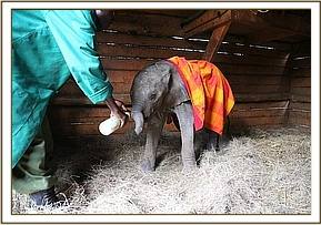 Once safely in the Nursery the tiny calf was unloaded and ushered into a cozy stable with fresh cut hay, a hanging blanket for comfort and warm freshly mixed milk on hand.