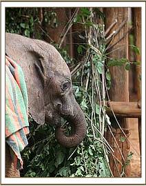 Murka has a strong will to live, and also a strong desire for revenge for what she has suffered at the hands of humans. In order to clean her wounds, she has to be sedated with Stressnil before anyone can attend to them, since physically overpowering her with sufficient manpower causes more stress which could prove counter-productive. The body wounds, although deep and horrendous, are superficial and will heal with time, but the head wound is more serious and we can only pray that it will not interfere with her breathing, or the use of her trunk, for life. After l0 days in the Stockade, we tried to allow her out with the other orphans, hoping that she might take her cue from them, but instead she was bent on escape. So, not without a great deal of difficulty, she was eventually overpowered and returned to the Taming Stockade.