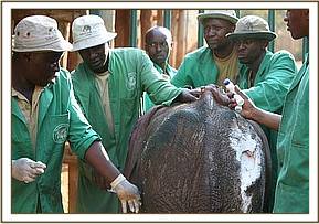 Whilst working in Amboseli National Park, the Trusts Mobile Veterinary unit, funded by Vier Photen, headed by Dr