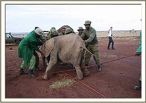 13th October 2010, the day that the 33 Chilean Miners were rescued from the bowels of the earth, beautiful little Naisula was also rescued, an orphan from the Archers’ Post Area close to Samburu National Reserve, an area where the Chinese road constructions works are based, and which has seen a great deal of Ivory Poaching of late. The KWS men who rescued her drove the calf to Lewa Downs, the closest airstrip and the rescue plane and Keepers arrived there in the late afternoon.