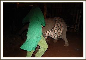 For us, she was, indeed, another miracle because as an orphan nearer two years old than one, she was friendly and trusting of the Keepers right from the very start, whereas most elephant orphans of her age, and especially those that originate in an area where elephants have been so badly persecuted by humans, want to exact revenge. However Naisula was different. From the moment of her arrival she accepted milk frist from a bucket and later from a hand-held bottle, slept that night with the Keeper beside her, and woke up in the morning to be welcomed into the fold by all the other orphans who came to the Gate of her Stockade to greet her. The following day, having been de-wormed, she was out and about with all the other Nursery elephants, instantly forming a strong bond of friendship with another Nursery newcomer named Kitirua who is also grieving for her lost elephant family and came into our care shortly before Naisula. They have become absolutely inseperable which is heartwarming to see.