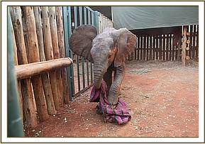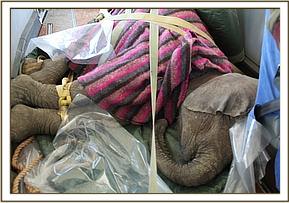 The calf was estimated to be about 18 months old and was a female, who was extremely fearful and wild, but who, with the input of the caring Keepers and the other Nursery elephants, hopefully will soon be sufficiently docile to take milk from a hand-held bottle, and understand that she is no longer threatened, but has been afforded a second chance of life amongst another loving human and elephant family, who will do their utmost to replace what she has lost so tragically, and who will heal her psychologically and nurture and love her as would her natural elephant family. She has been named "Narok".