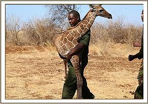 On the 19th of September KWS Officer Bernard Rono, who heads the DSWT funded Meru mobile Veterinary Unit, reported having received a baby male reticulated giraffe estimated to be just one week old, which had been rescued by KWS rangers on the Meru National Park boundary. The fate of his mother remains a mystery, but the location where he was found happens to be an area bedevilled by human wildlife conflict.